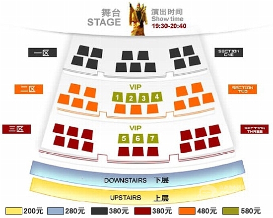 ※価格面と座席位置の面から、多くの方に人気の280元、380元、480元のお席をメインに販売させて頂いております。弊社で580元、200元のお席も30%オフでお手配可能となりますので、ご希望の場合は別途お問い合わせいただけましたら幸いです。
