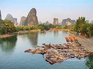 桂林市内を南北に貫く全長437キロの漓江のなかでも、最も景観が優れているといわれる桂林~陽朔間83キロをのんびりと遊覧船で下ります。川は両側に林立する奇峰を縫うように流れ、晴れた日には青い川面に緑の山が映り美しい。雨の日にはまるで水墨画のような幽玄の世界が現れます。