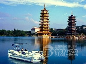 | 09:00/13:00 ご宿泊ホテルご出発 09:30/13:30 湖中にある日月双塔公園観光 10:20/14:20 遊覧船で杉湖、榕湖、桂湖、木龍湖を観光 11:00/15:00 かけ橋、榕湖の噴水観光、畳彩山を遠望 12:00/16:00 ご宿泊ホテルへお送り ★ご予約時に、午前発又は午後発をご選択願います★ |