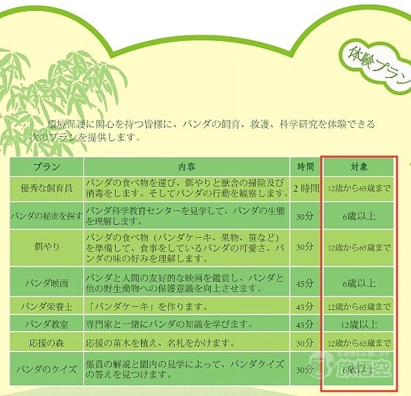※パンダ園の規定では12歳以上から体験参加となりますが、弊社では申請して10歳以上であれば体験可能となります。