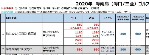 ※ホテルのプールやゴルフなどでお楽しみ下さい ※下記画像をクリックすると、海南島 ゴルフ料金表 が表示されます