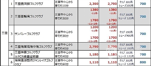 ※下記画像をクリックすると、海南島 ゴルフ料金表 が表示されます